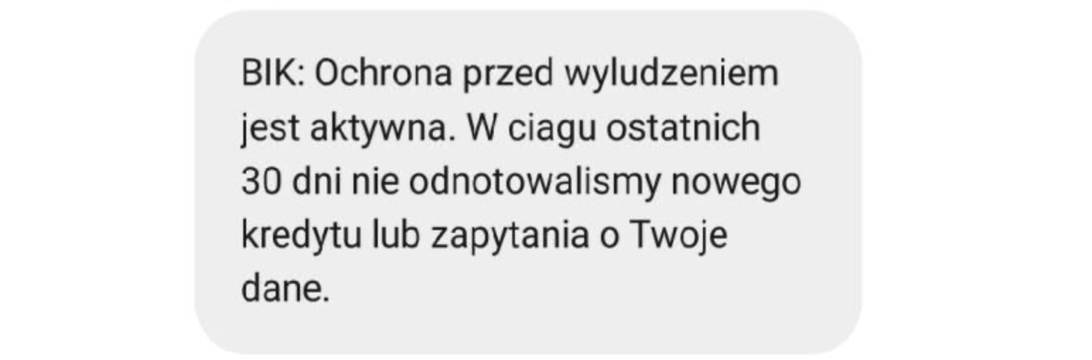 Za każdym razem otrzymamy SMS i e-mail, gdy ktoś będzie próbował np. wziąć kredyt na nasze dane osobowe, bądź gdy my skorzystamy z produktów w instytucjach korzystających z bazy BIK.