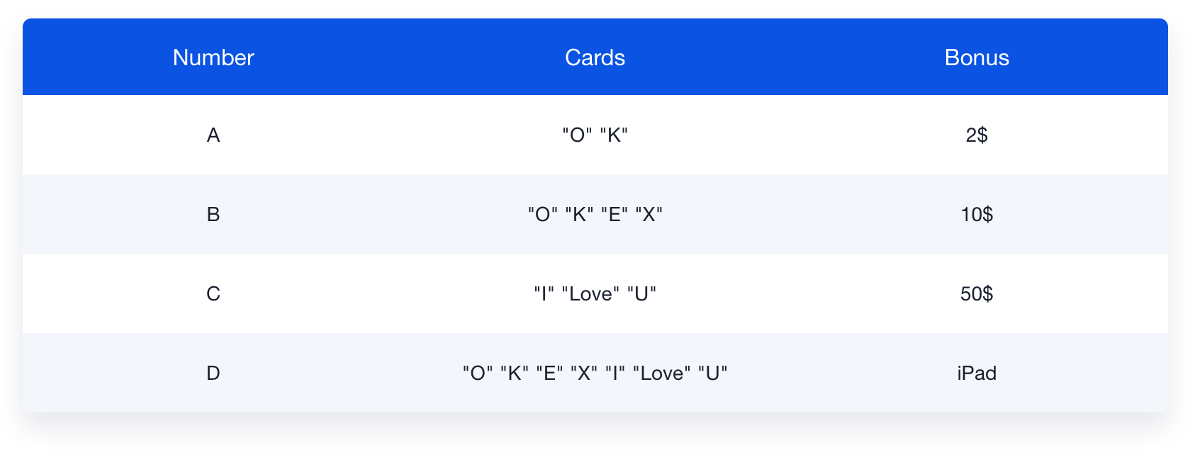 Jak informuje nas OKEx, każda osoba biorąca udział może zbierać karty do gry oraz wziąć udział dzięki temu w losowaniu iPada oraz nagrody pieniężnej w kwocie 200$. Łącznie w tym konkursie zostały przygotowane 3 iPady oraz pula nagród w kwocie 5000$.