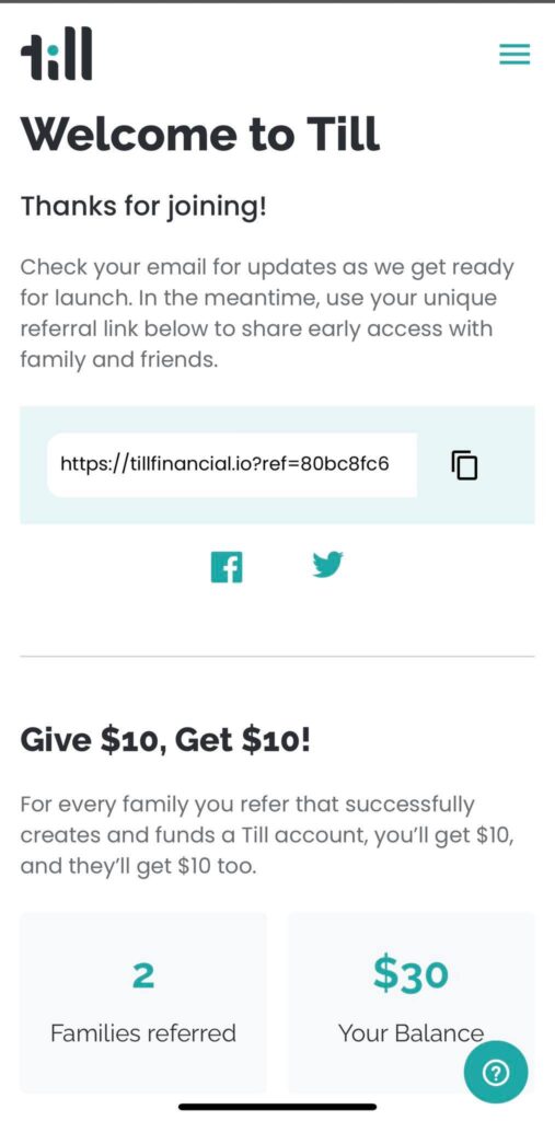 “Dzięki Till Twoja rodzina może łatwo przesyłać pieniądze, zarządzać codziennymi obowiązkami i przeglądać wgląd w wydatki. Twórz cele finansowe i umowy oraz zapraszaj rozszerzoną społeczność do współpracy w osiąganiu tych kamieni milowych. Till zapewnia narzędzia i zasoby potrzebne do tego, aby pomóc dzieciom zachować odpowiedzialność i rozwinąć zaufanie potrzebne do podejmowania lepszych decyzji finansowych – razem.”